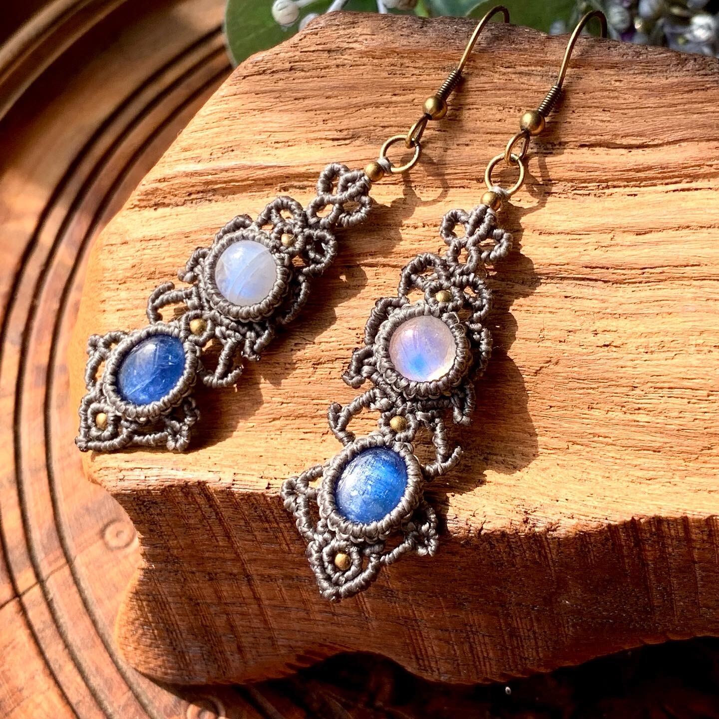 レインボーのシラーが綺麗なレインボームーンストーンと、深いブルーのカイヤナイトを